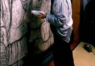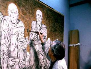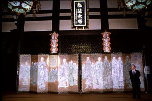 高山画伯が高野山・金剛峰寺に納める屏風絵を描くことになったと映画監督の村野鐵太郎さんから聞いた。その製作過程をハイビジョンVTRで記録する際、スチール写